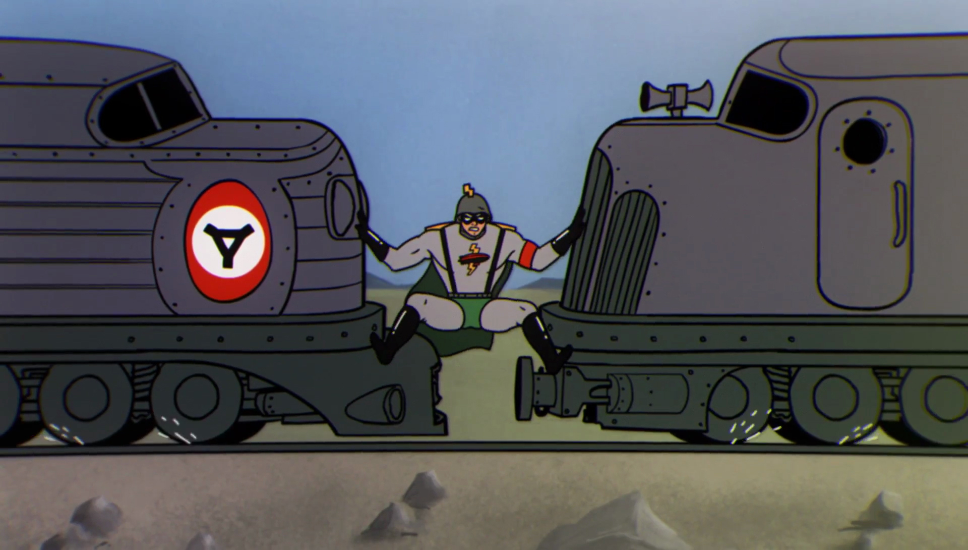 Holterdiepolter! It’s official – Blitzmensch is a blast! General Engel’s favorite TV show is getting bigger and better each year! Päng! Blitzmensch and his partner Fräulein Fox save the world from capitalism, communism, and degenerates every day in this amazing show celebrating die überlegenheit – the superiority – of the Reich and the Aryan race. Ach, nee! Who will be this week’s baddie? The evil Money Grubber? The notorious Proletariat-Man? The vicious Mr. Yankee Monkey? Don’t miss a single episode of Blitzmensch!